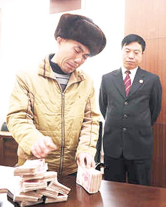 12月17日上午11时许,胥敬祥从副院长张云周手中领到第一笔赔偿金时,禁不住热泪盈眶。张云周握住胥敬祥的双手说:“把这钱拿回去好好筹划日子。”