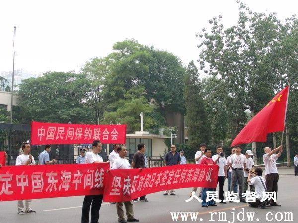 人民监督网讯 (记者 朱瑞峰)2008年6月18日下午,中国15名公民在日本使馆前和平示威,抗议日本舰艇撞沉中国台湾渔船。整个过程持续了半个小时。