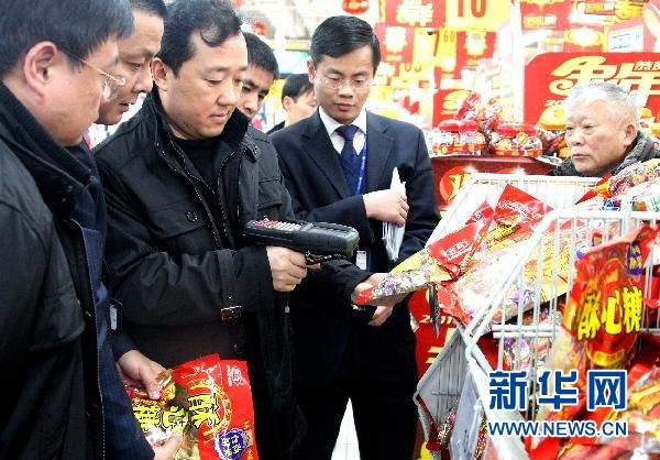 1月30日,物价检查所的工作人员在使用价格扫描仪检查商品价格条形码。当日,上海市物价检查所组成专项检查组,对家乐福上海联洋店内的商品物价进行了分类抽查,并对该超市接受处罚后的整改措施进行了检验。_______________________________________________________________________________