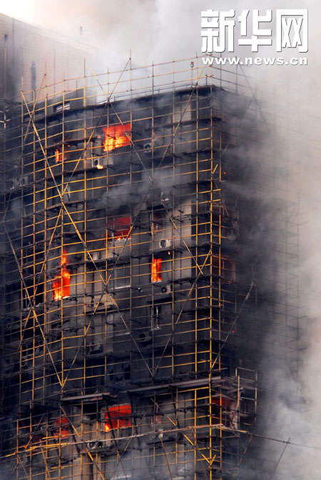 资料图片:2010年11月15日,上海余姚路胶州路高层住宅脚手架起火。