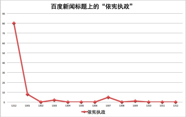 十八大闭幕不久,习近平强调“依宪执政”,这个接近“宪政”的口号,有史以来首次出现在人民日报标题。2012年12月,中国媒体上“依宪执政”频率飙高 。然而这一提法倏起忽落。2013年,人民日报有7个月完全未见“依宪执政”。百度新闻标题中包含此语的文章寥寥无几,有8个月完全空白。十八届三中全会开幕当天,人民日报头版头条长篇述评《中国道路的“历史新起点》曾出现这一提法,两天后在《政治文明的壮丽篇章——十八大以来民主政治建设述评》再次出现,但三中全会的决定并未使用。