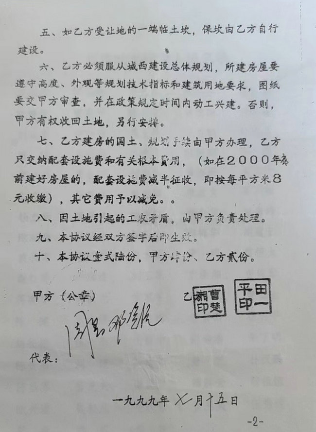 卖掉土地协议上有时任上梅镇副镇长,城西建设开发区主任周晋的亲笔签名,上亿资产的企业就这样被毁灭,卖机械设备的钱,拆除房屋材料的钱,卖地皮的钱都被原上梅镇抢占侵呑。