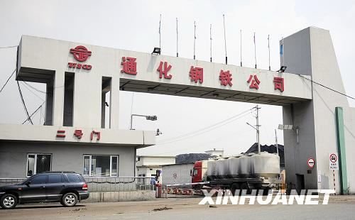 这是7月26日拍摄的吉林通钢集团通化钢铁股份公司大门。7月24日,吉林通钢集团通化钢铁股份公司发生一起群体性事件。部分职工因不满企业重组而在通钢厂区内聚集上访,反对河北建龙集团对通钢集团进行增资扩股,一度造成工厂内7个高炉停产,建龙集团派驻通化钢铁股份公司总经理陈国军被殴打,不治身亡。目前事态已经得到控制,通化钢铁股份公司生产、生活秩序恢复正常。新华网记者 王昊飞 摄