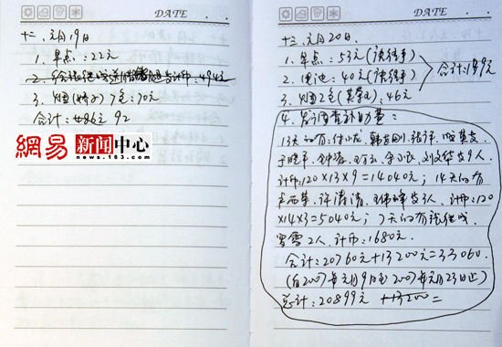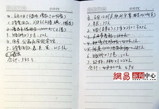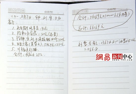 经过联系,有一位深知内情的网易网友在镇坪向网易出示了一本私人日记,内容是“华南虎第二期调查开支记录”,其中详细记载了2007年1月8日至1月23日、2月4日至2月7日的第二期华南虎调查队花销明细。惊人的是,里面记载了送礼送钱的行贿记录: