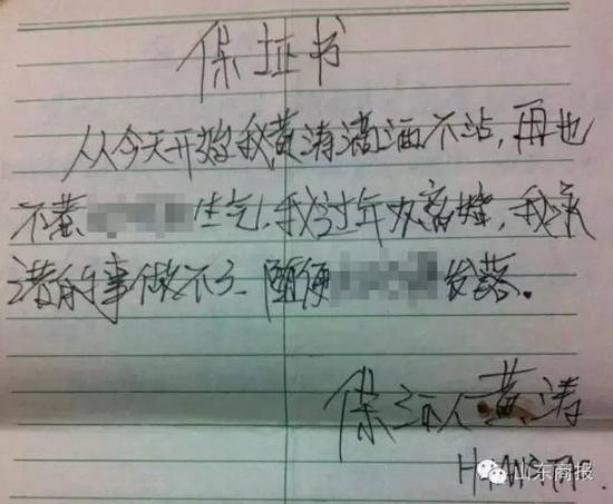 最近一次保证书,写于今年4月16日。黄涛在保证书中写道: