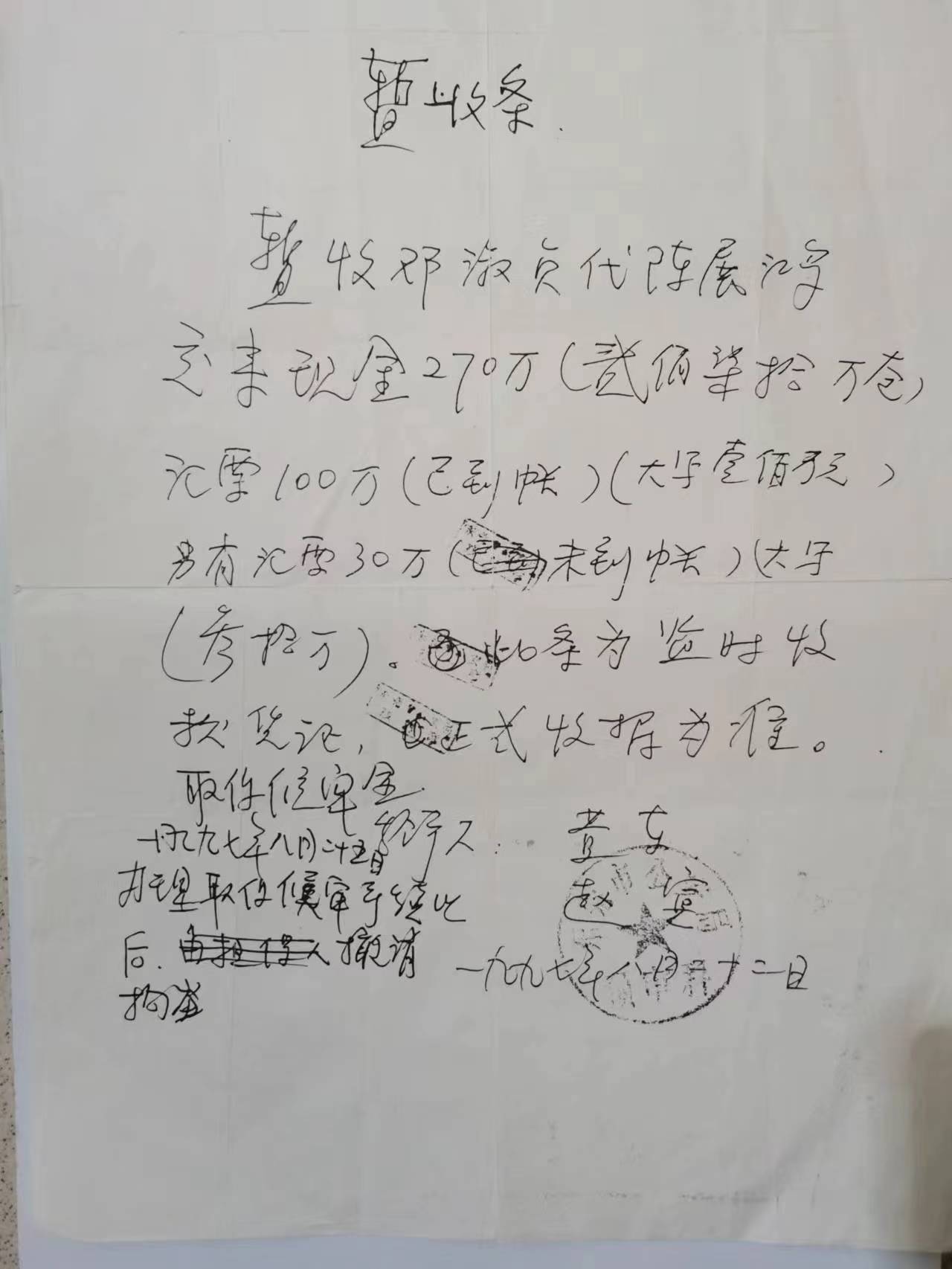 图:400万保释金收条