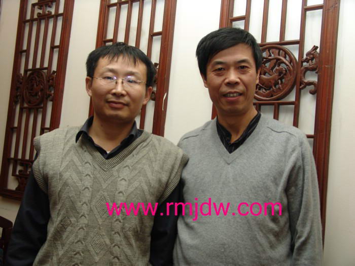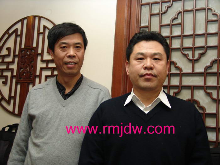 本图:举报人陈涛安与中国青年政治学院教授展江合影 摄影/朱瑞峰