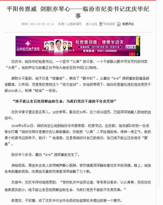 图:山西新闻网为造假书记沈庆华涂脂抹粉