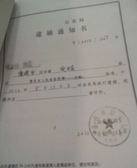 原重庆市公安局副局长唐建华重庆公安局对唐建华的逮捕通知书